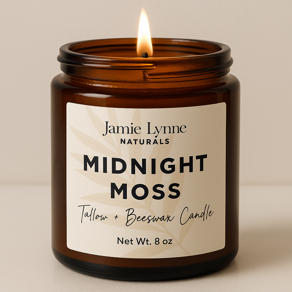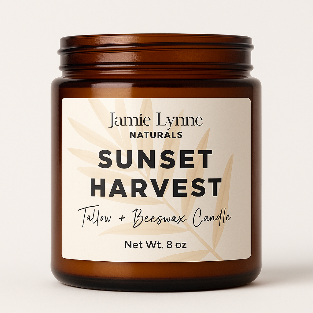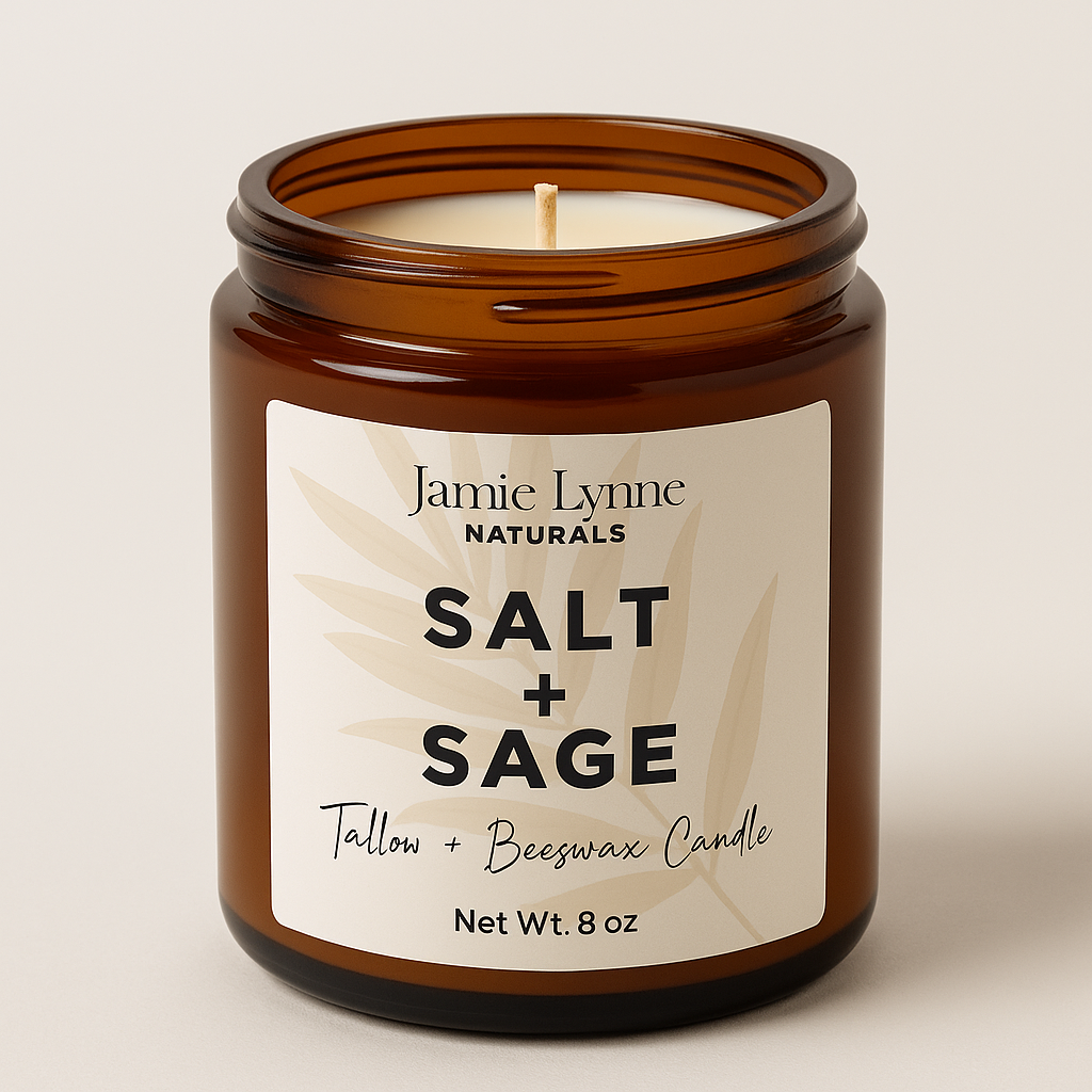 Our Tallow & Beeswax Candle is hand-poured with pure, clean-burning ingredients—just grass-fed tallow and natural beeswax. This simple yet timeless blend creates a warm, steady flame and a light, honeyed aroma that feels cozy and inviting in any space. Unlike paraffin candles, our formula is free of toxins and synthetic fillers, making it a healthier choice for your home. All of our candles are made with clean scents—fragrance blends that are free from parabens, phthalates, and other harsh chemicals—so you can enjoy beautiful aromas with peace of mind. Long-lasting and beautifully rustic, each candle reflects the heart of natural living while filling your room with soft light and pure comfort.