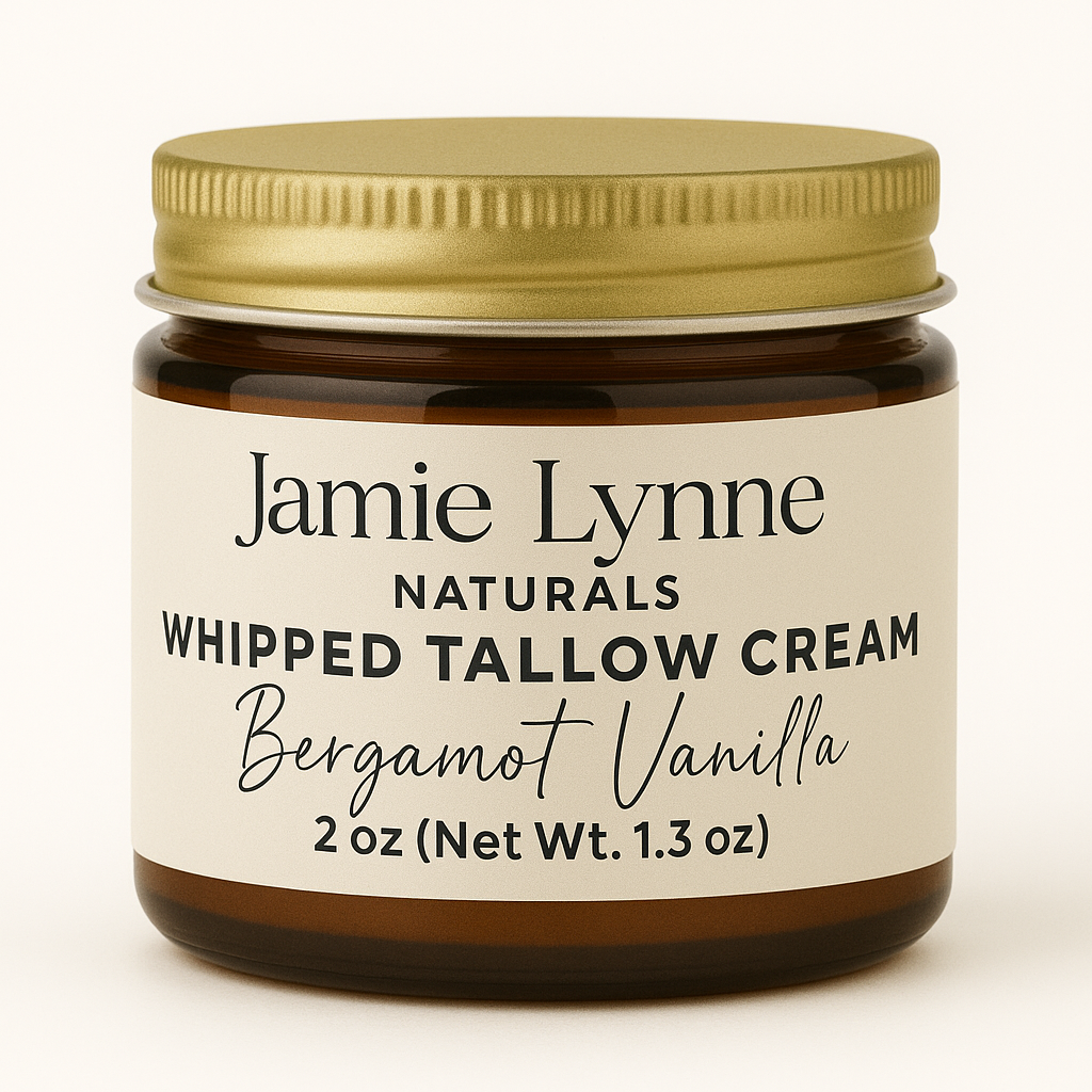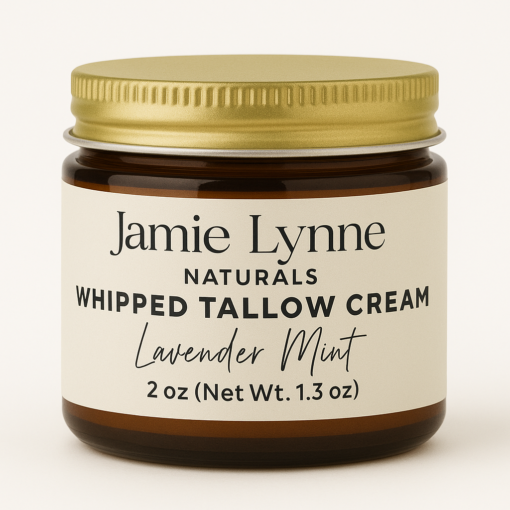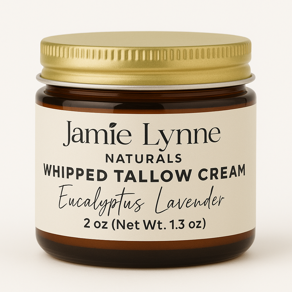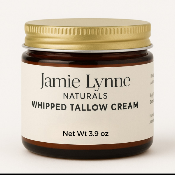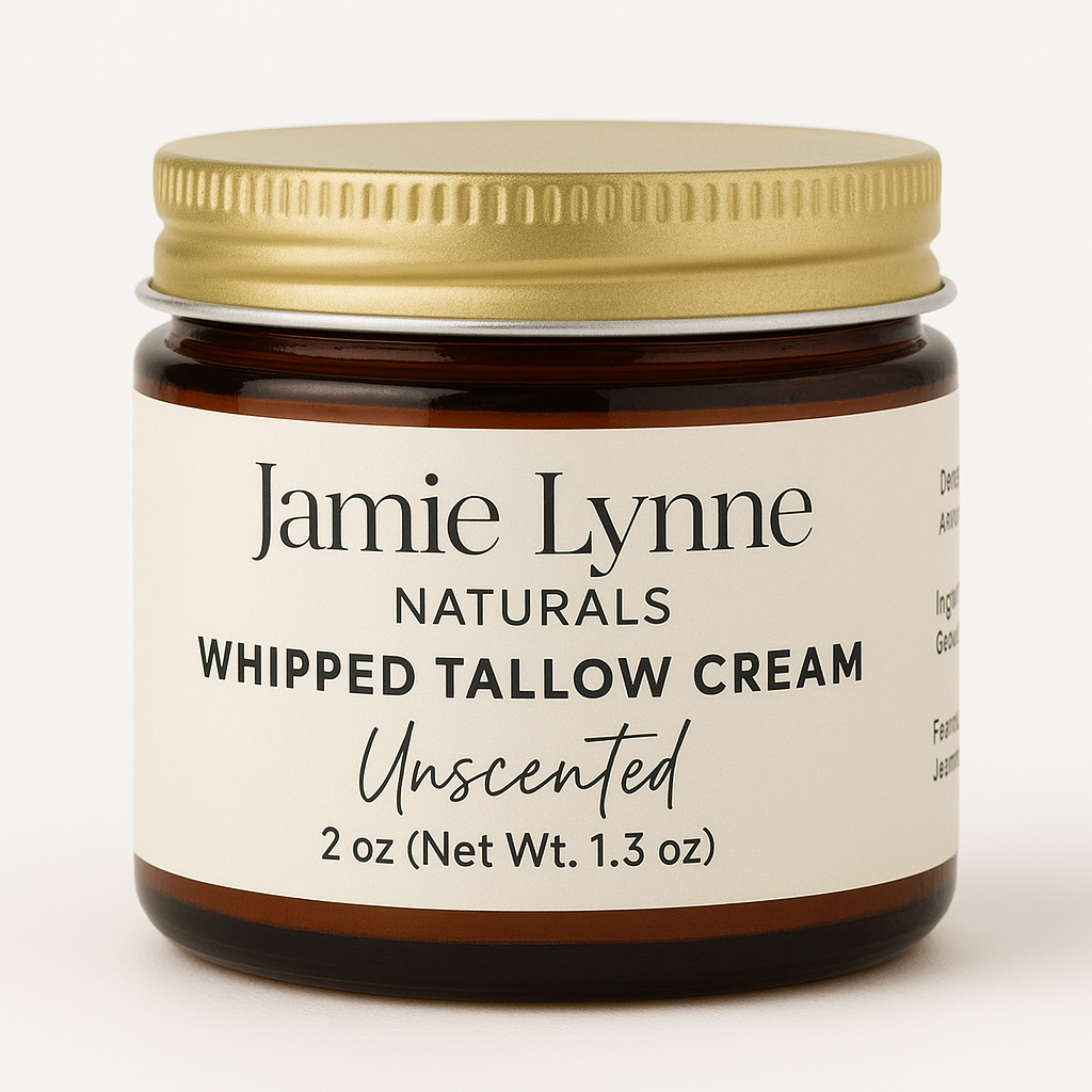 Improve your skin's health with nourishing Whipped Tallow Cream. Made with 100% grass fed and finished beef tallow from liver and kidney suet, organic castor oil, and your choice of therapeutic essential oils, this cream comes in three convenient sizes and a glass amber jar. Use it on your face, hands, feet, body, and everywhere else to reap its benefits of improved nourishment and overall skin health.